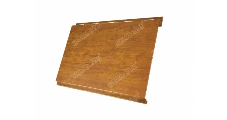 Металлический сайдинг Grand Line Вертикаль 0.45 мм classic Print Premium с пленкой Golden Wood